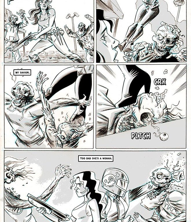 Today I read Blood + Brains by Jeffrey Burandt. Blood + Brains is a short comic, a flash fiction comic I suppose. I don’t usually read comics or graphic novels – I appreciate them and I love to flick through them, but my mind wanders and I find it hard to focus on what’s going on. So, the discovery of this flash fiction comic was exciting! It’s beautifully drawn and the story is fun and silly.