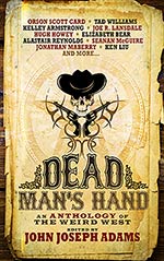 Dead Man’s Hand includes work from Mike Resnick, Beth Revis, Alastair Reynolds, Hugh Howey, Kelley Armstrong, Jeffery Ford, Fred Van Lente, Christie Yant and others. Published last year by Titan Books, this genre is new to me.