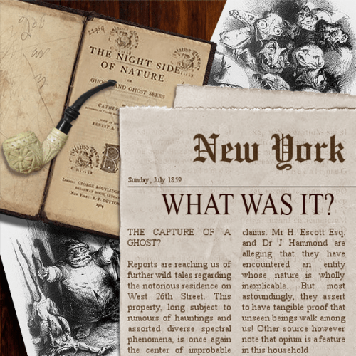 | I cannot even attempt to give any definition of my sensations the instant after I turned on the gas. I suppose I must have shrieked with terror, for in less than a minute afterward my room was crowded with the inmates of the house. I shudder now as I think of that awful moment. I saw nothing! Yes; I had one arm firmly clasped round a breathing, panting, corporeal shape, my other hand gripped with all its strength a throat as warm, and apparently fleshly, as my own; and yet, with this living substance in my grasp, with its body pressed against my own, and all in the bright glare of a large jet of gas, I absolutely beheld nothing! Not even an outline,—a vapor! |