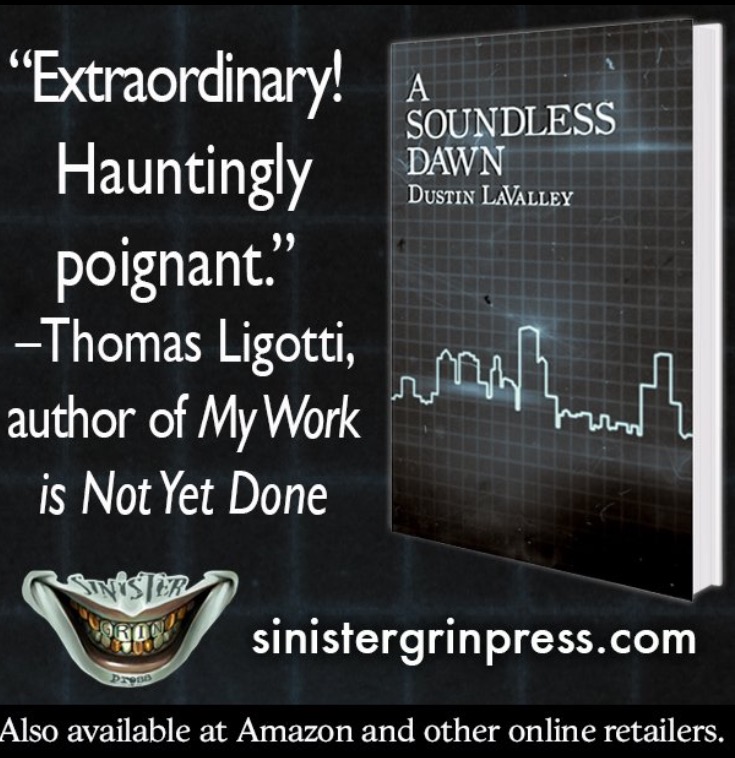 I recently reviewed Dustin LaValley’s excellent A Soundless Dawn. Dustin has very kindly agreed to give away a signed copy to one lucky Examining the Odd reader! Simply click here to enter. Good luck!
