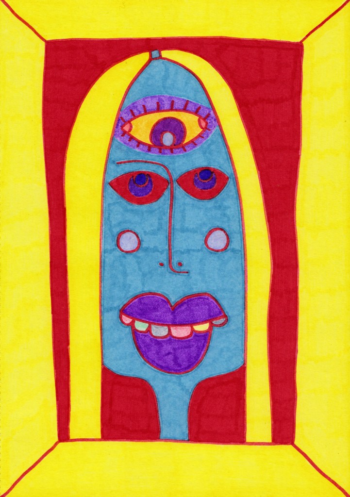 The Third Eye: Nestled within a drawn frame, our next piece unveils a portrait of a woman with a captivating twist—an ethereal third eye adorning her forehead. Rendered in ink pen on A5 card, this piece challenges perceptions and invites contemplation on inner sight and intuition.