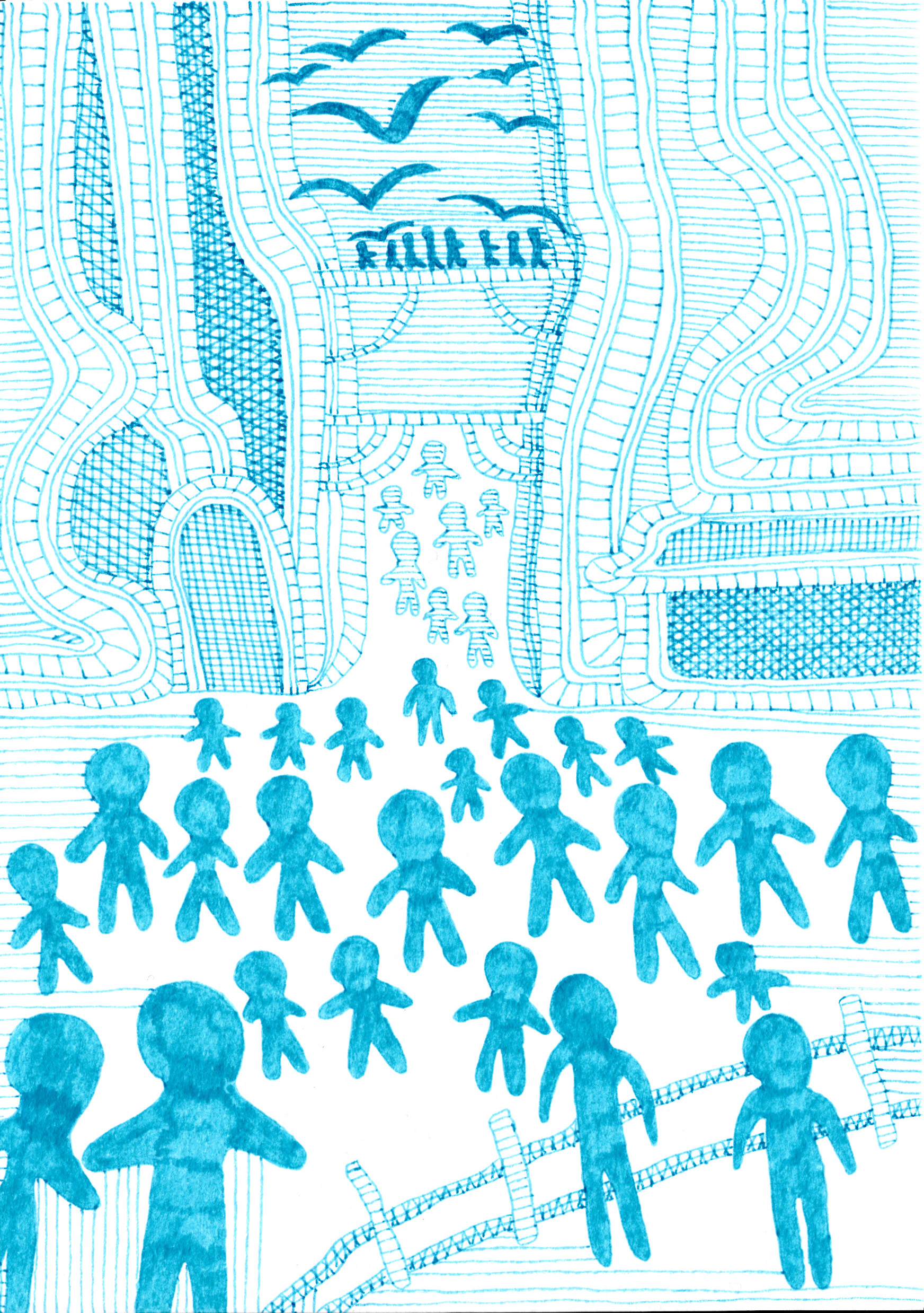 A departure from the familiar, I’ve embarked on a new style with blue ink on white A4 cardstock, exploring the minimalist beauty of monochrome. These drawings captivate with their simplicity, each line a deliberate gesture echoing across the page.