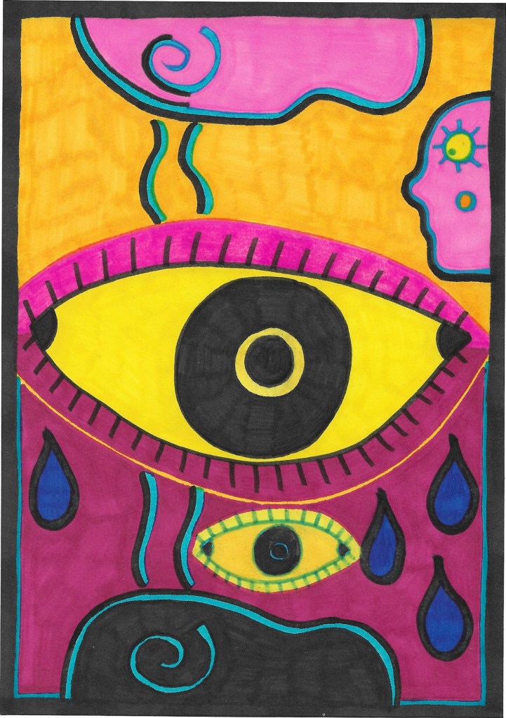 My original drawings, paintings and collages can be bought from my Etsy shop.